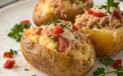 Poteter fylt med tunfisk og ost 🐟🧀 🍴 Ingredienser: 4 poteter 1 boks tunfisk i lake 1 ss sennep 2…
