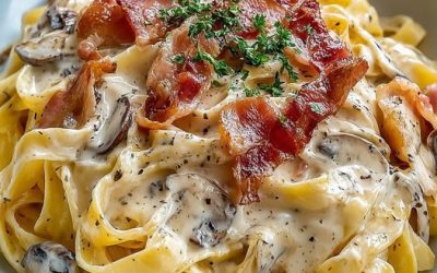 Tagliatelle med fløte, sopp og sprø pancetta Ingredienser: 400 g fersk eller tørket tagliatelle 200 g pancetta, tynt skivet eller…